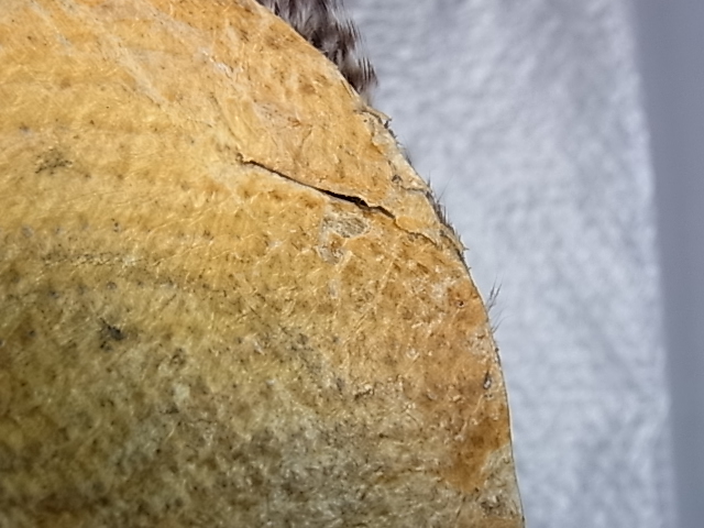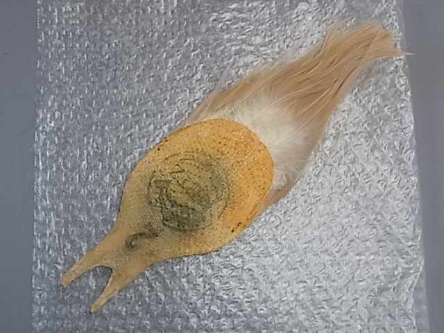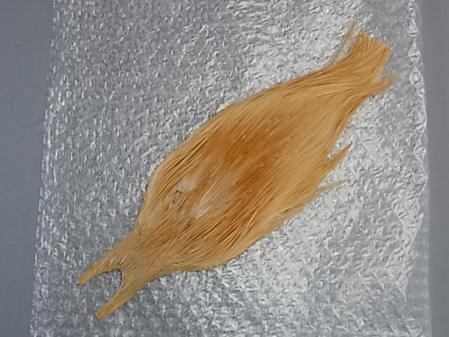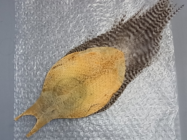 メッツ#1グリズリーと#2ライトジンジャーのセットです。 グリズリー中央#16〜#14近辺が10mm角程度、スキン左に裂け、ライトジンジャーは中央#18〜16近辺が広範囲に、左側#14あたりまで使用されてます。台紙はございませんのでジップロックに2枚一緒に収納になります。