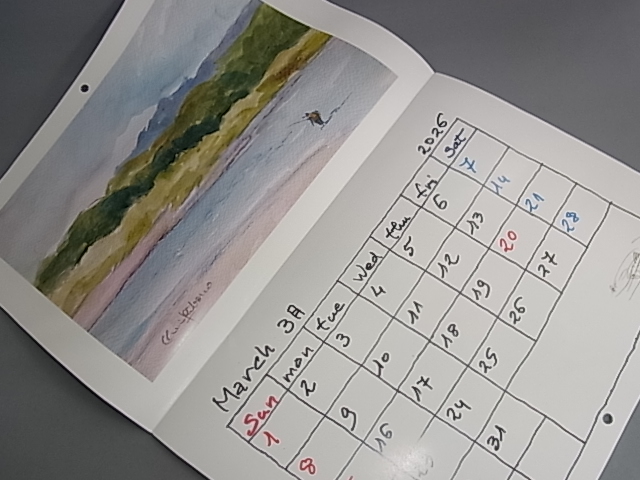 FFMのときめく落ち着いた水彩画が毎月楽しめます。書き込みスペースもありタイイングデスクでの釣行予定メモにも便利です。 畳んだ状態でA4サイズ、上下に開いた状態で縦約42cm*横約30cm。税込み¥1500です。 入荷数が限られてますのでお早めにどうぞ! *定形外郵便(¥320 郵便受け)ネコポス便(¥300 郵便受け)から発送できますのでご注文時のコメント欄にお書き添えください。